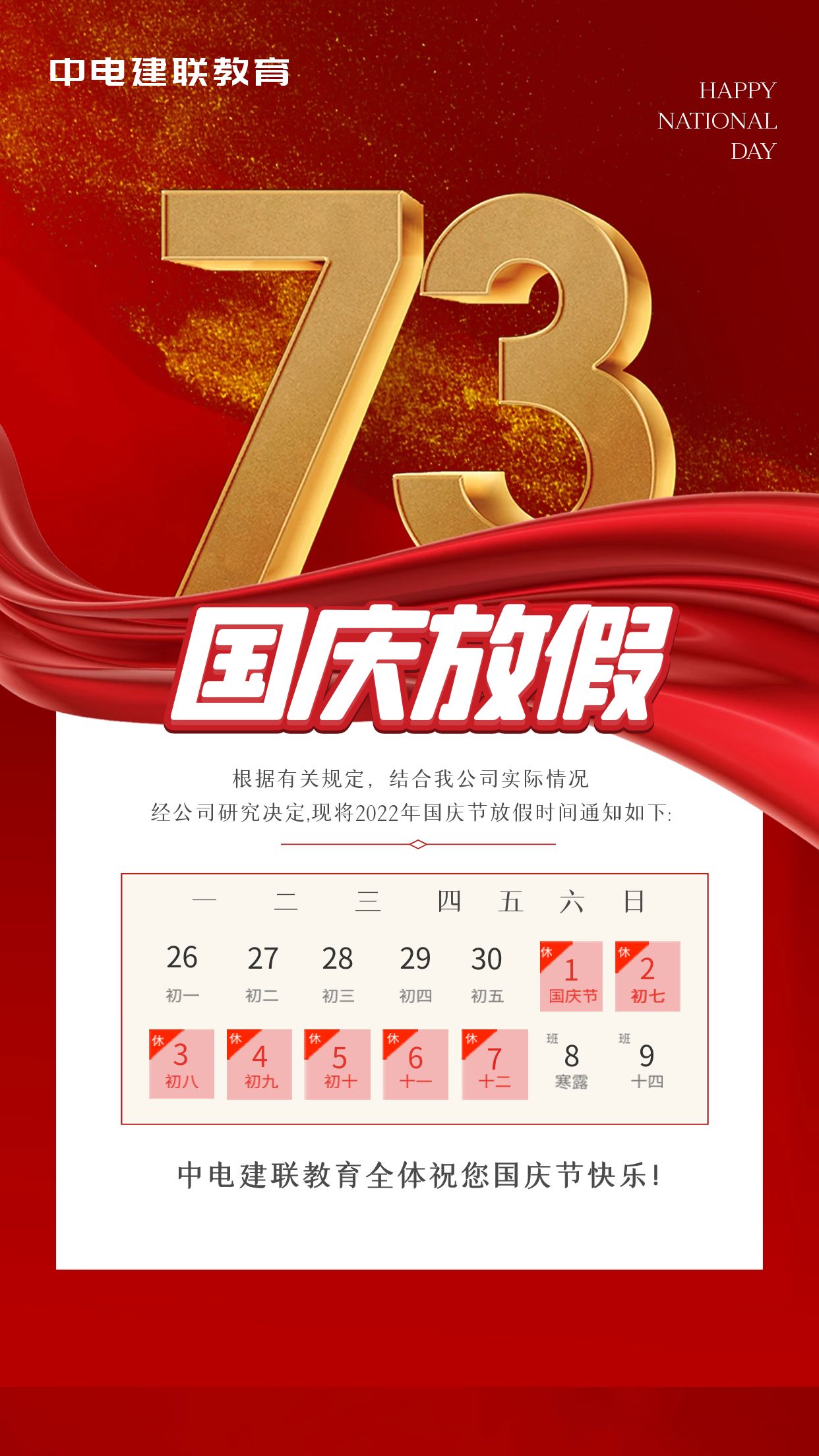 中电建联教育全体祝您:国庆节快乐!